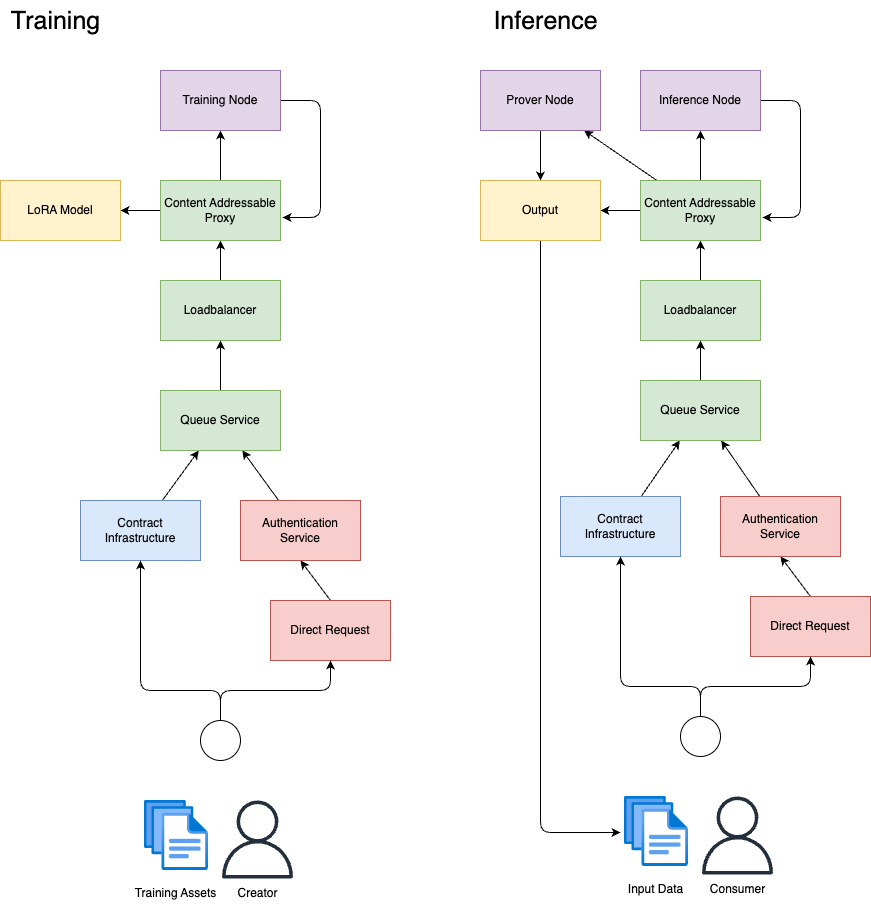 - The private LoRA is referenced by the on-chain commitment generated during training.